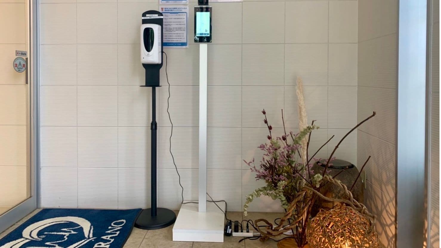 ◆正面玄関、風除室にて、検温と手指消毒の機器を設置しております。 |